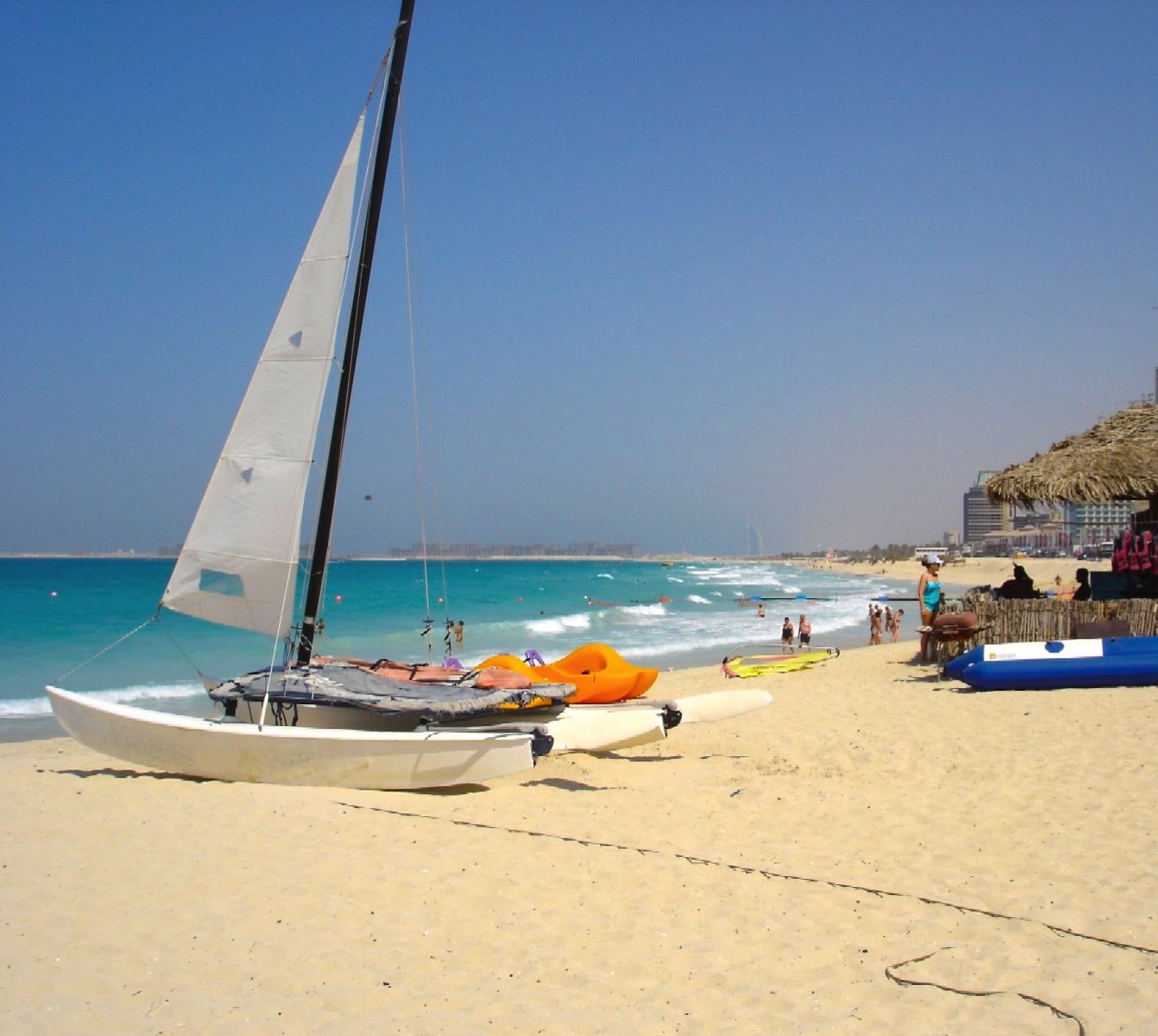 Surf catamaran and tourists on Jumeirah Beach