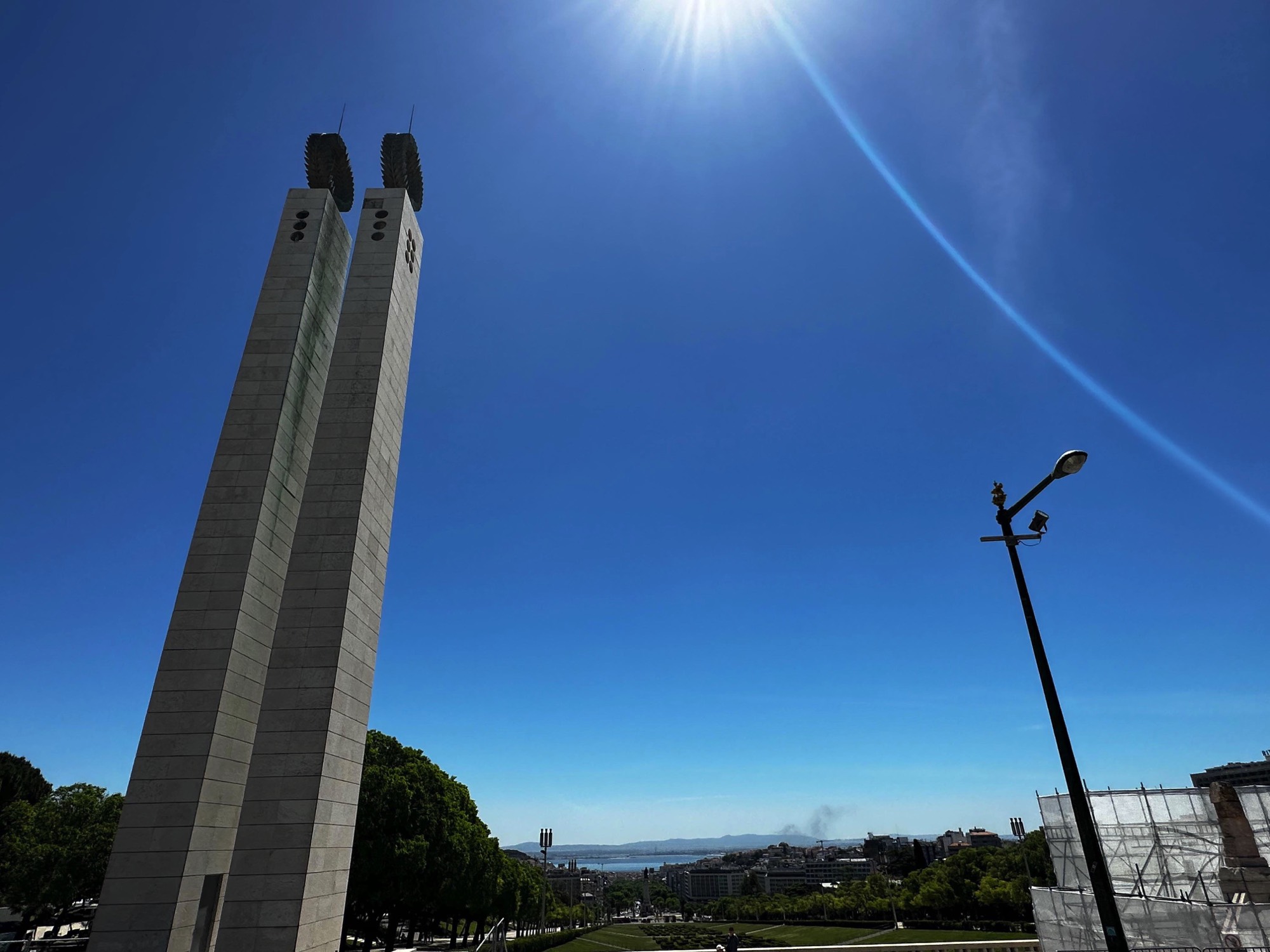 Monumento dos Restauradores - an obelisk at the center of Praça dos Restauradores with Palácio Foz in the background