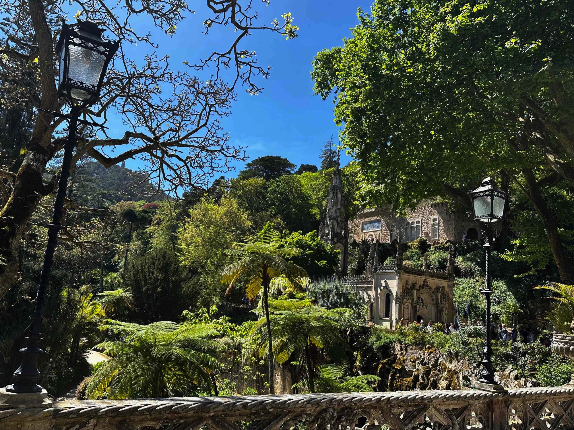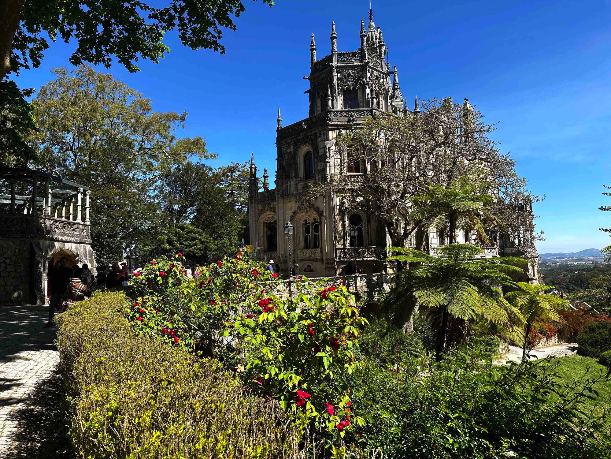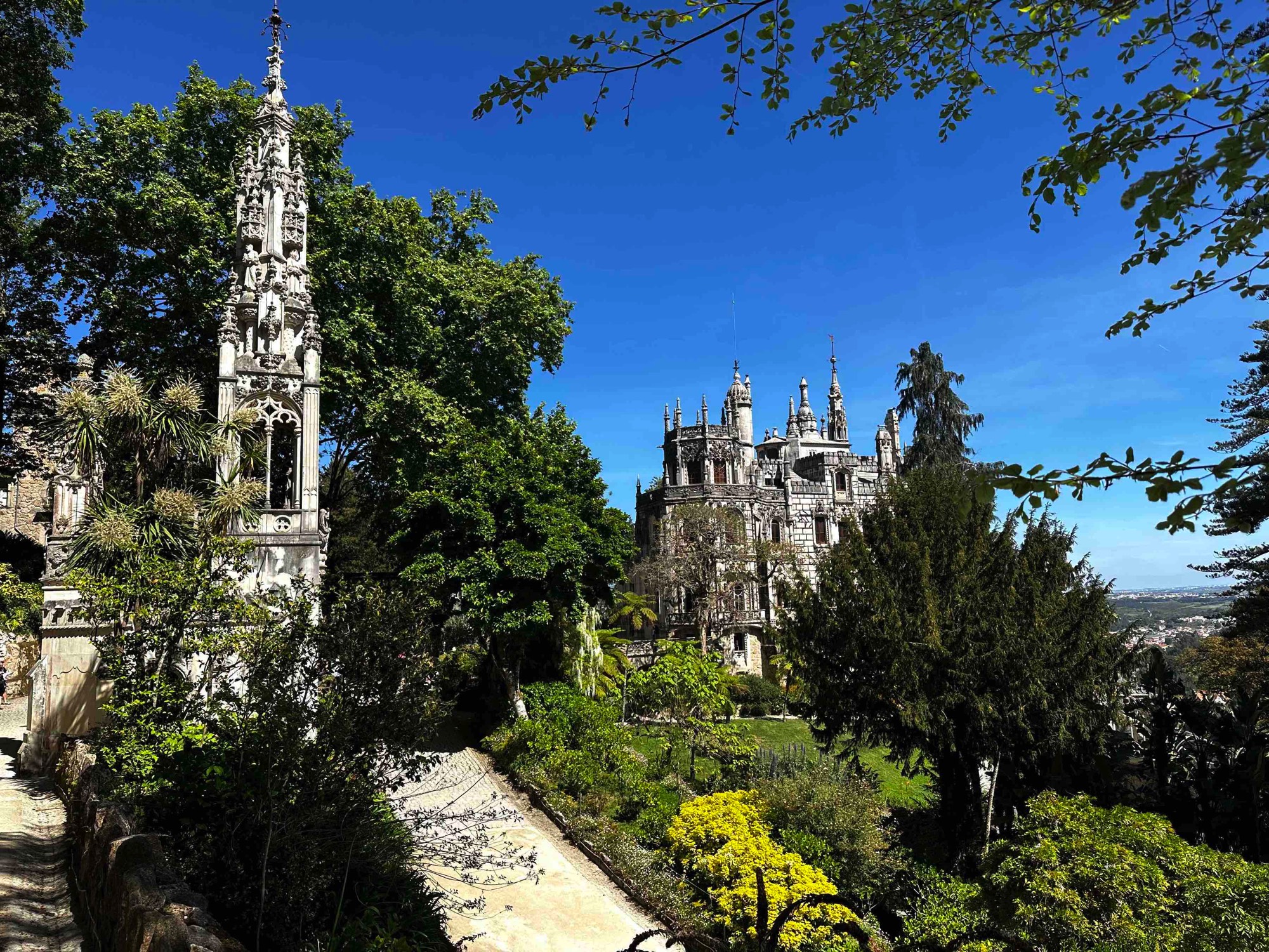 Palacio de Regaleira (R) and the Chapel (L) as seen from the palace grounds
