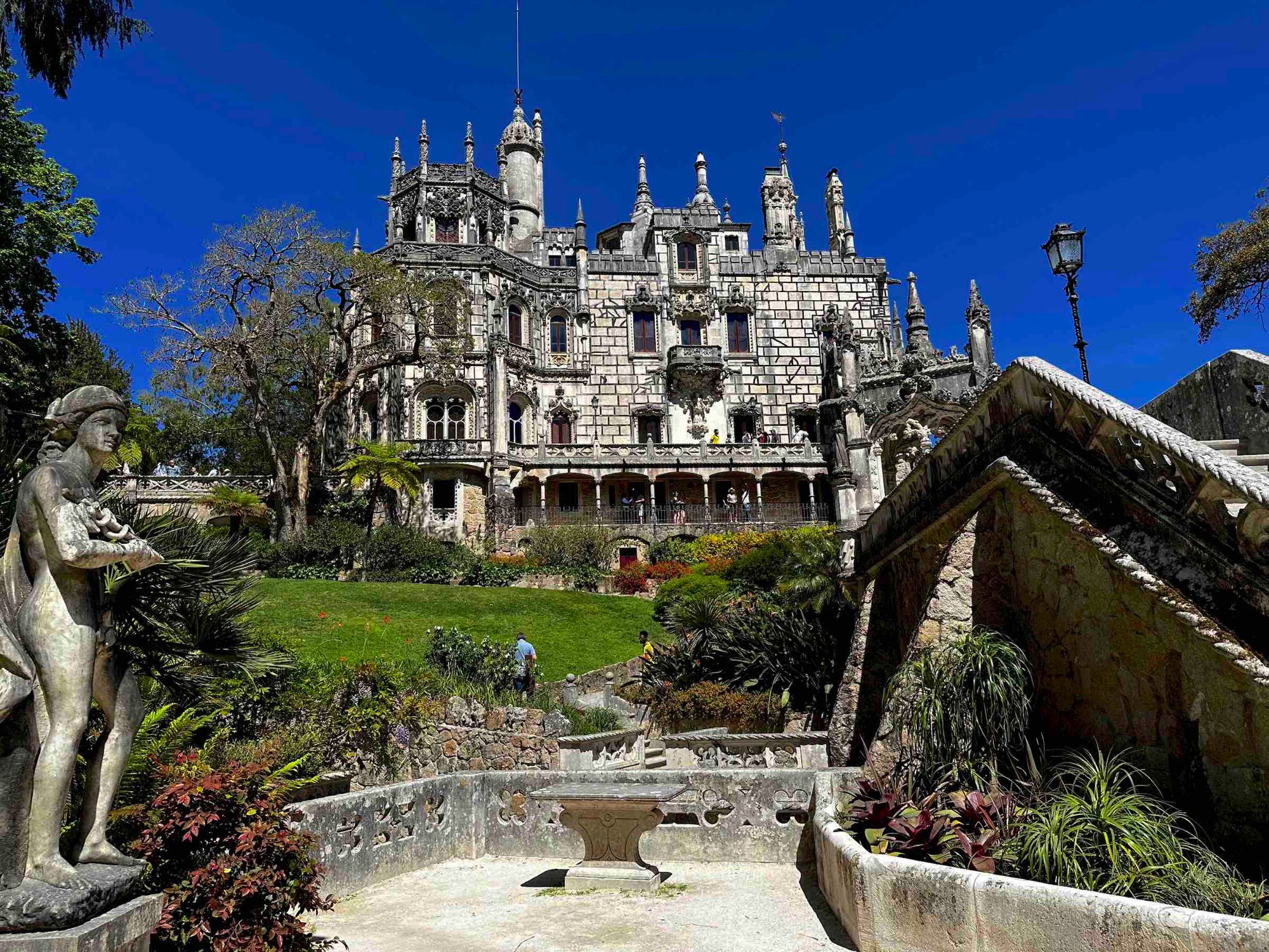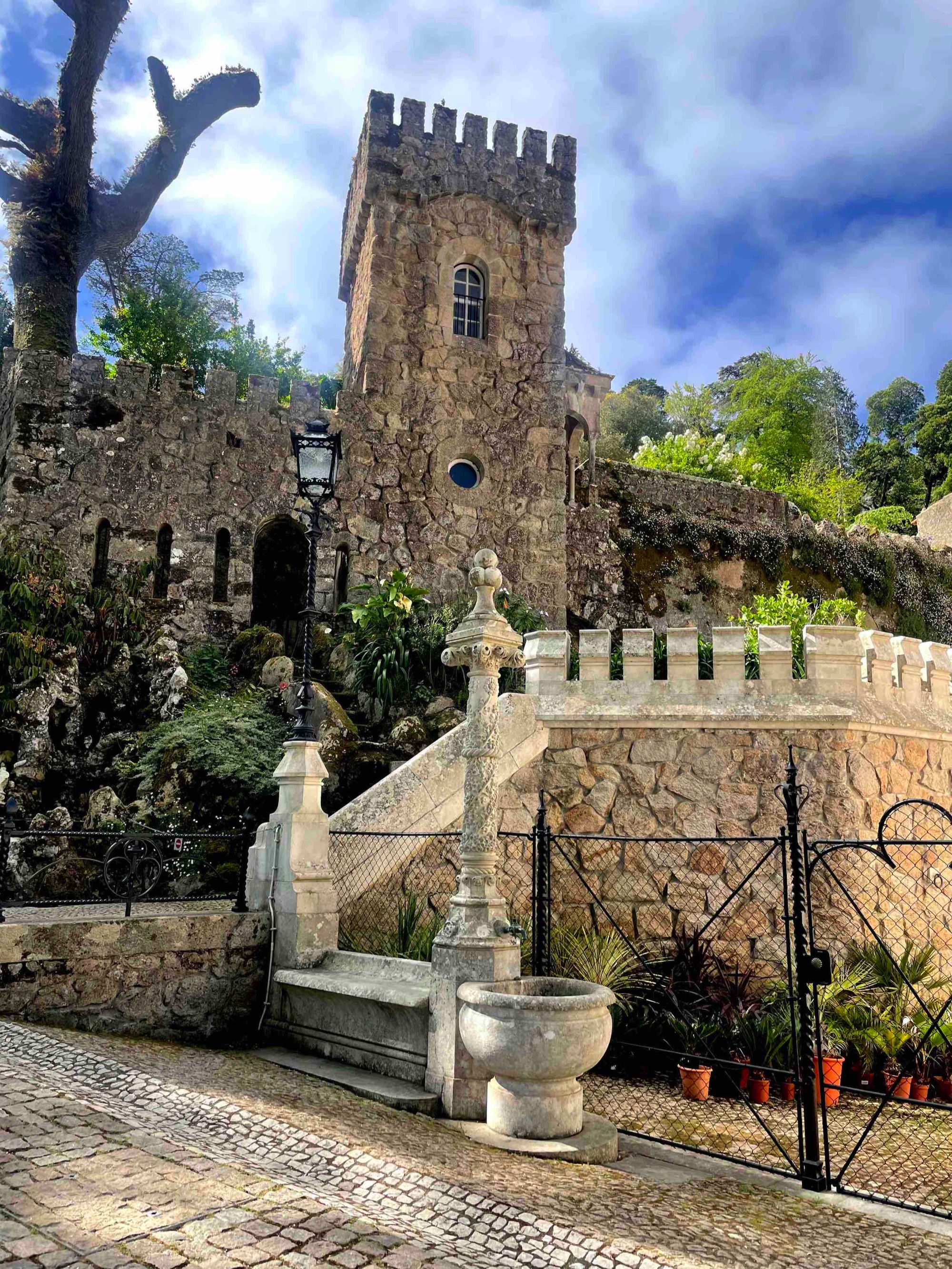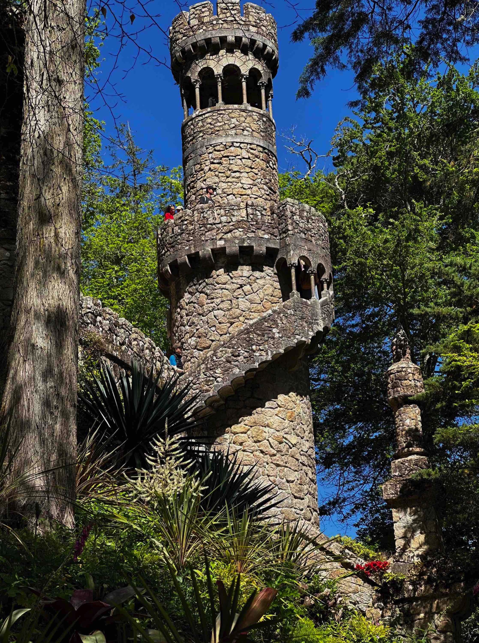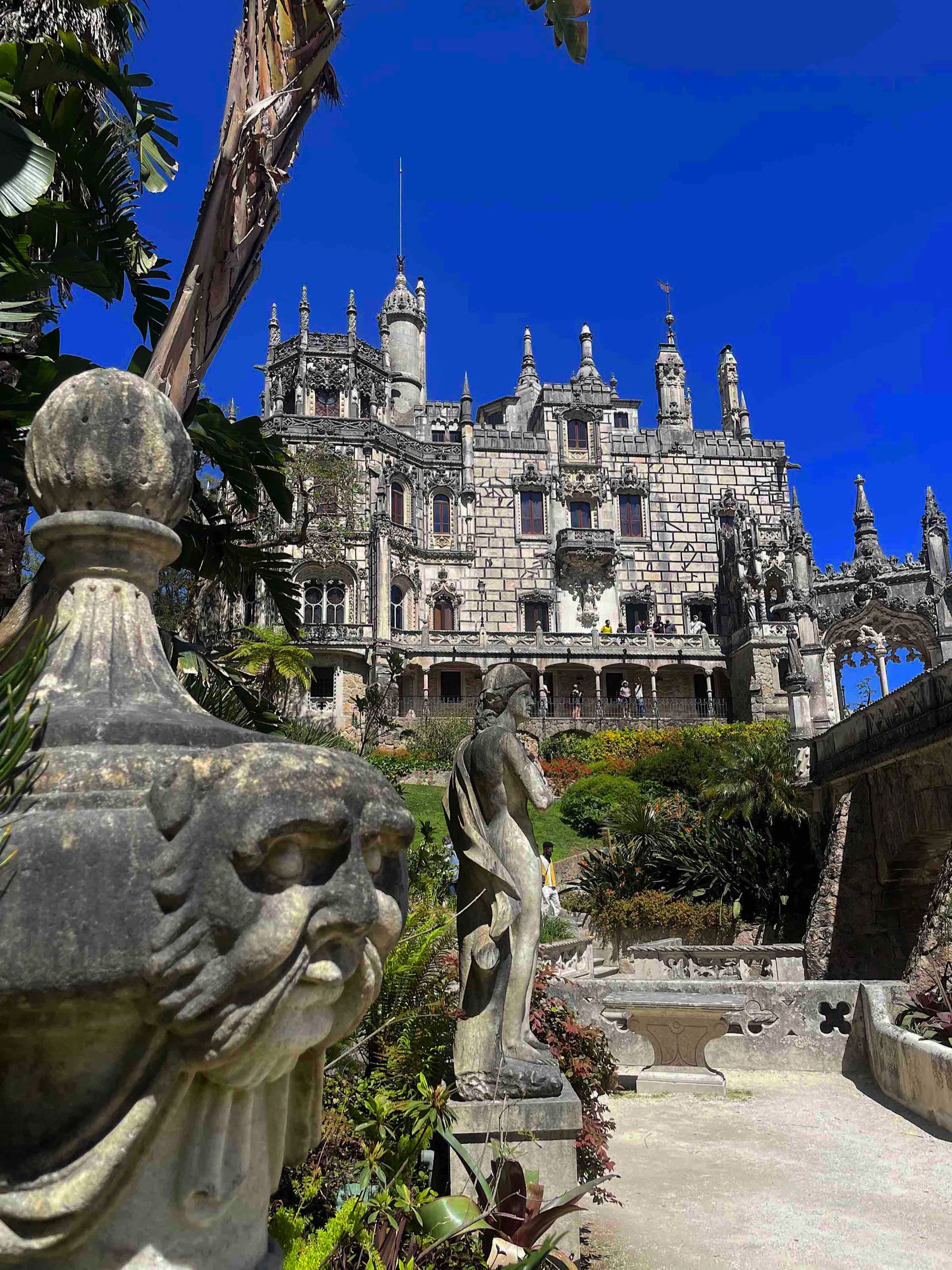 Palacio de Regaleira (R) and the Chapel (L) as seen from the palace grounds