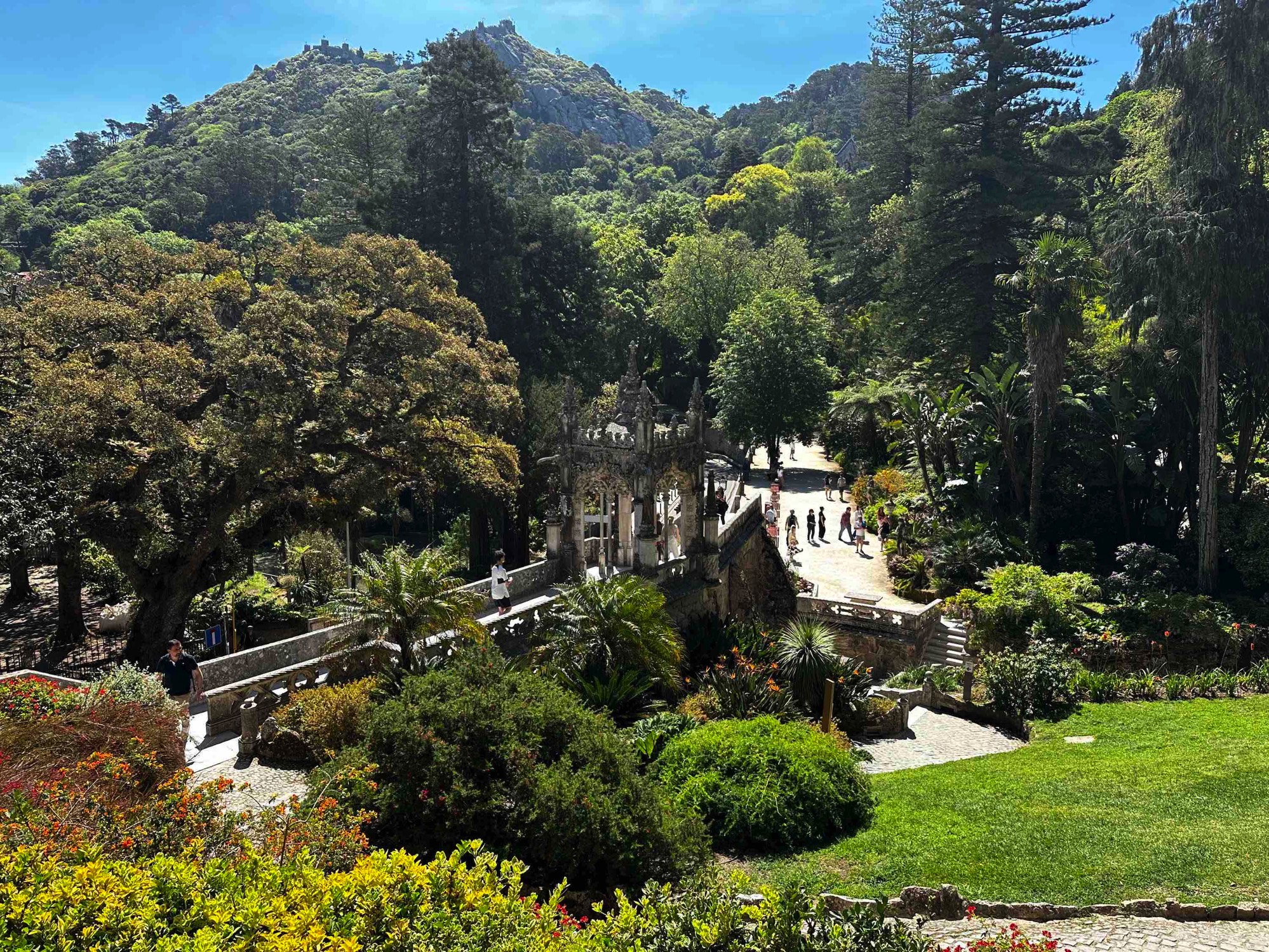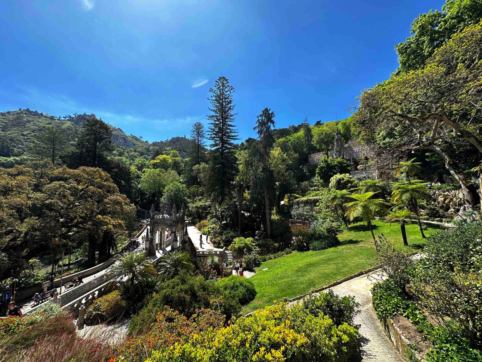 Palace grounds with the Castle of the Moors and Pena Palace on top of the hill visible