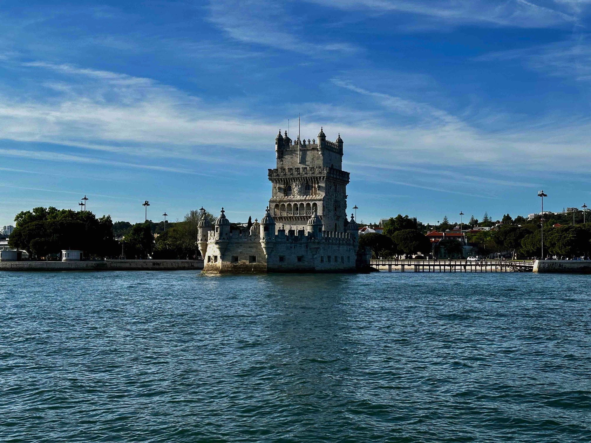 Torre de Belém - UNESCO World Heritsge site built c. 1514 on a small island on the Lisbon side of the Tagus river. It has Portuguese Manueline architectural style with Moorish influences.
