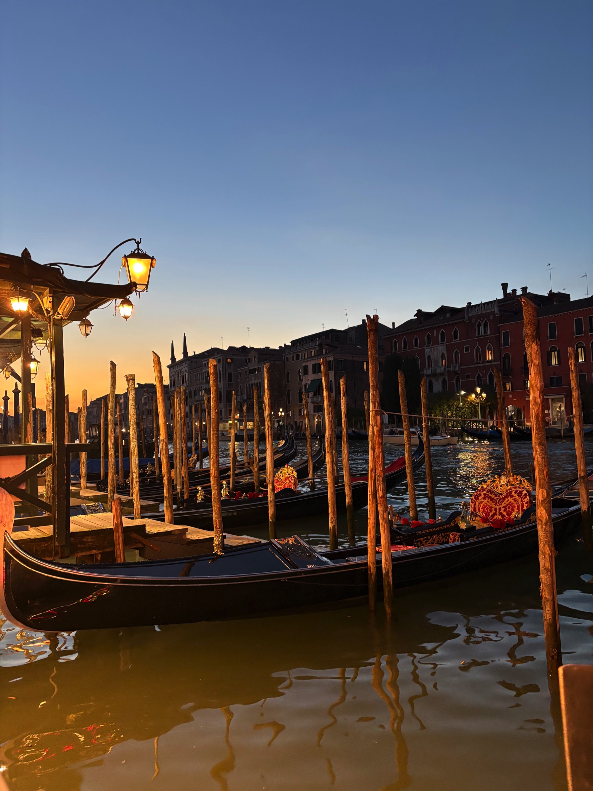 Gondolas moored on the canal