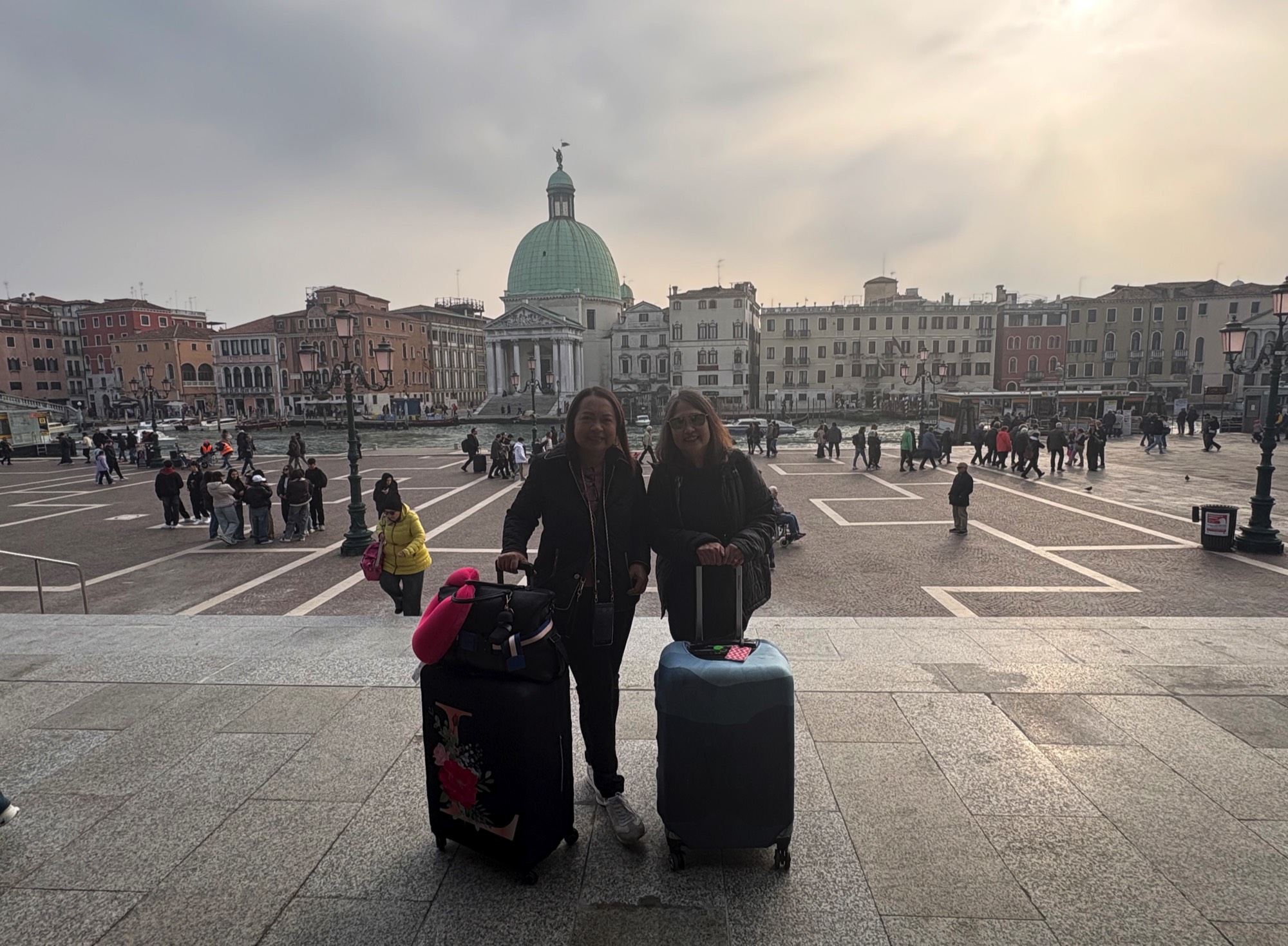 Departure from Venice with Leah - in front of Santa Lucia train station (the church of San Simeone Piccolo in the background)