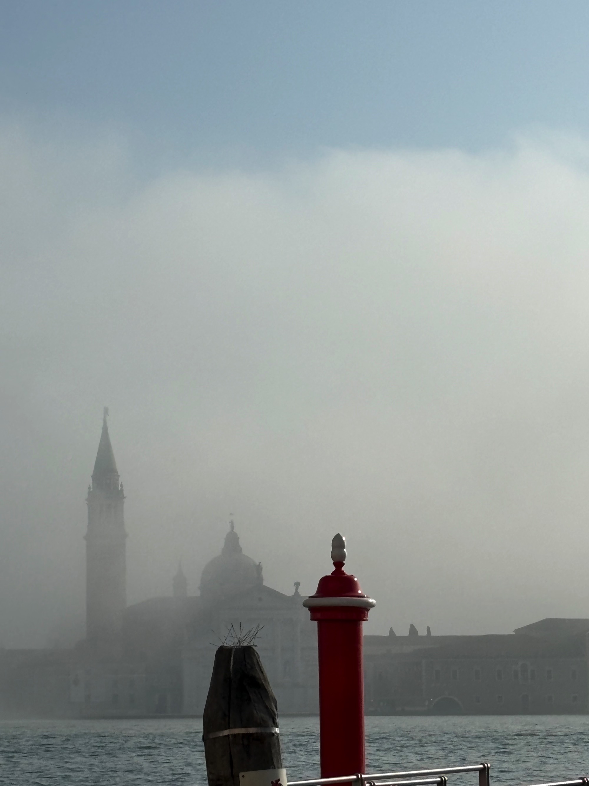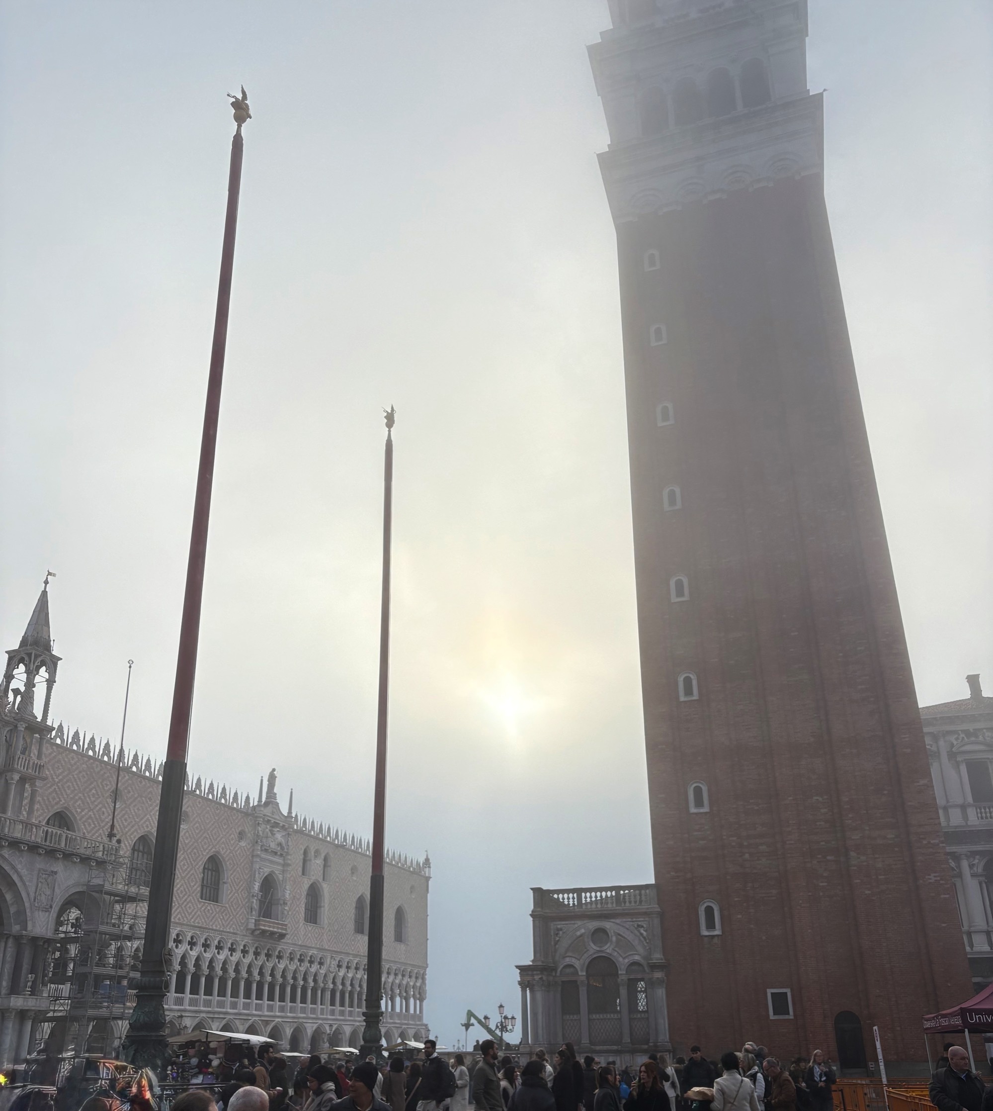 Foggy morning at Piazza di San Marco with the campanile on the right