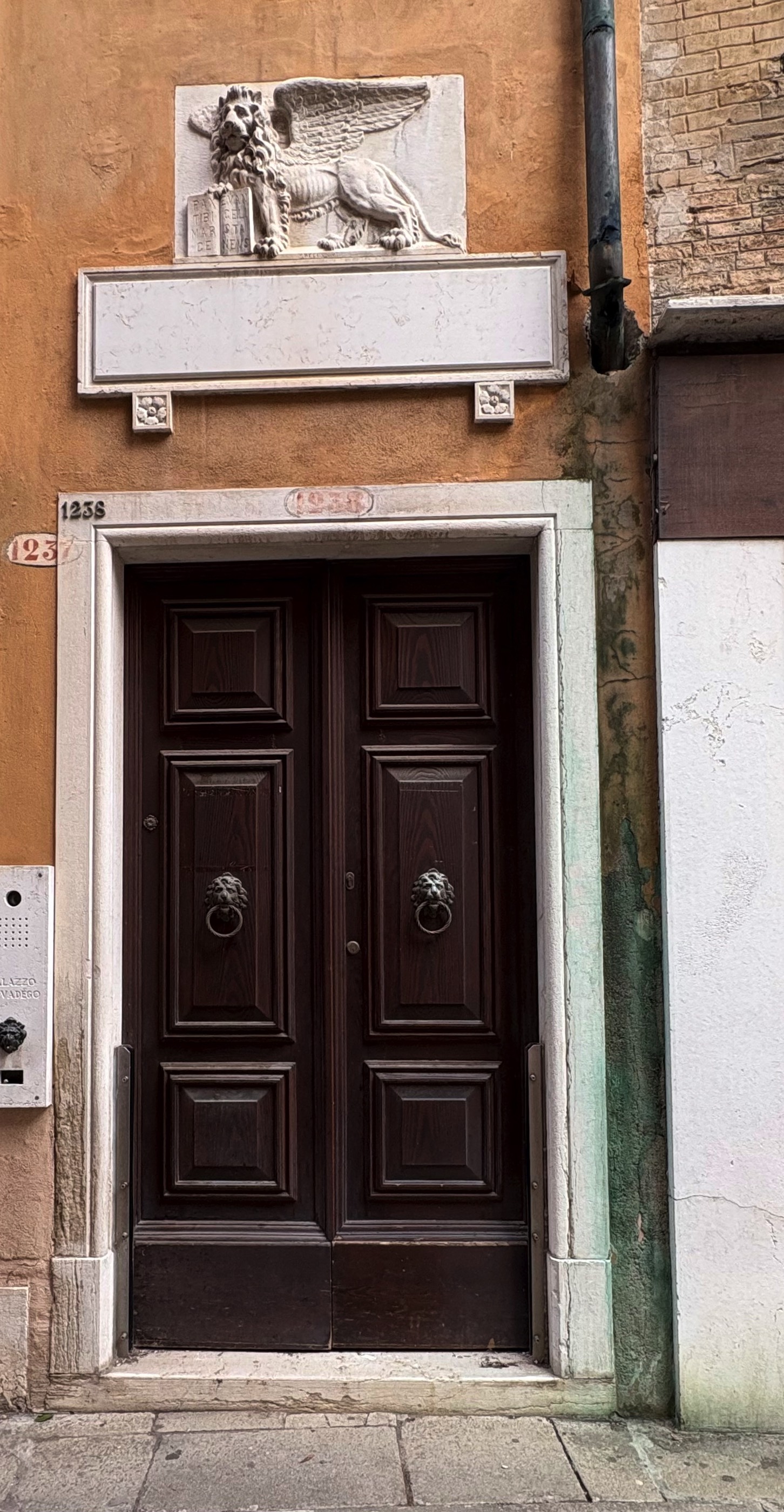 The Lion of Venice (right), with the dome and campanile of San Marco in the distance
