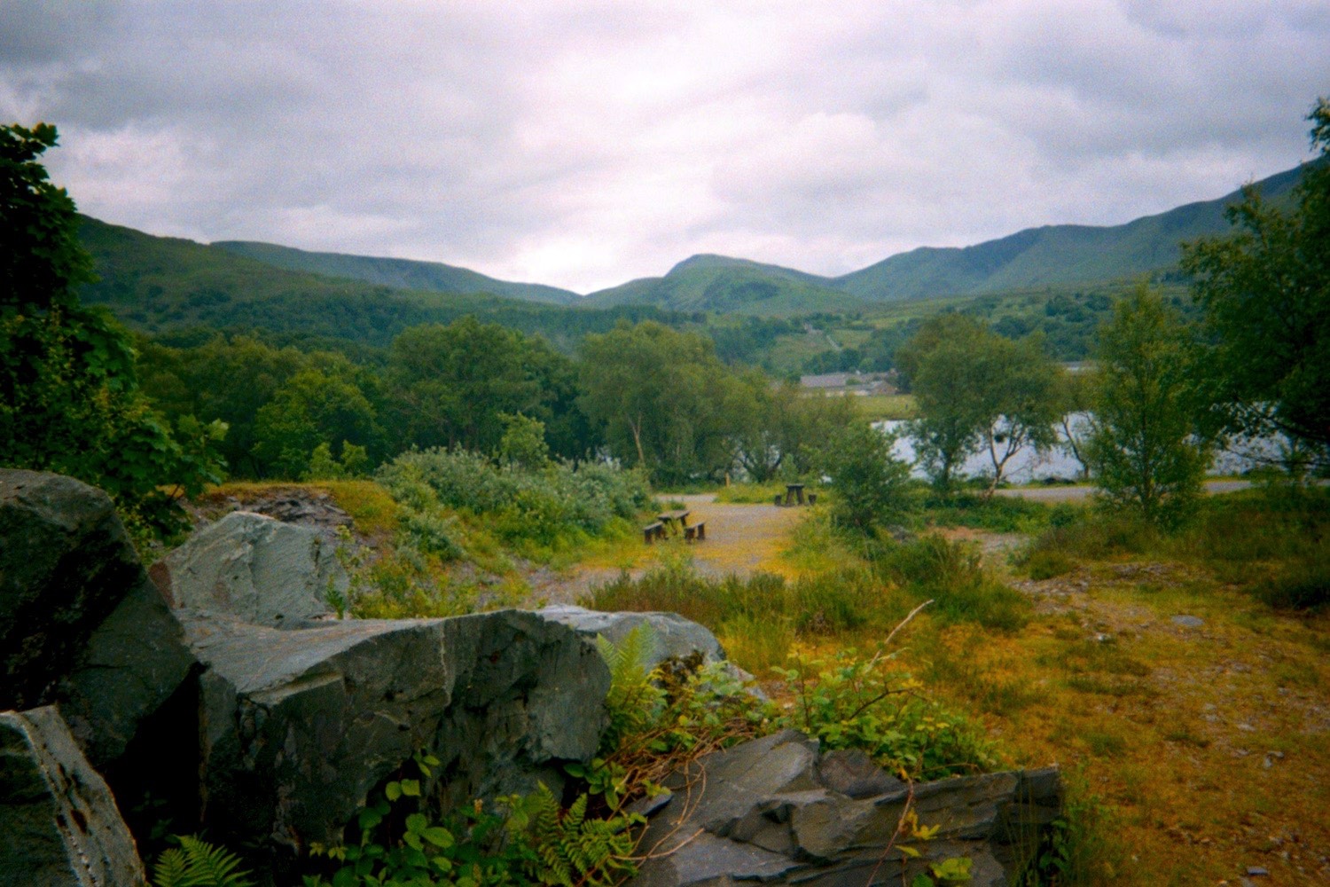 View of Llanberis and Llyn Padarn from Snowdonia's foothills
